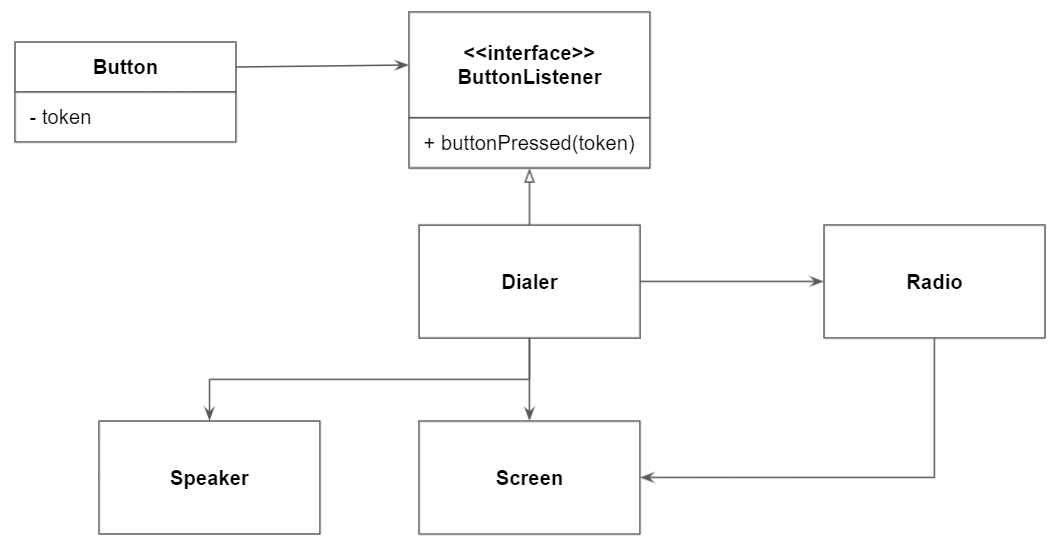 불행하게도 이번에는 Dialer가 Button에 대해 알아야 하는 일이 생겼다. Dialer가 꼭 ButtonListener에서 입력이 들어올 것이라고 기대해야 하는지는 생각해봐야 할 문제이다.