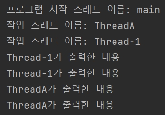 Thread-n이라는 이름으로 명명된다.n은 스레드의 번호이다.main스레드의 이름은main이다.
