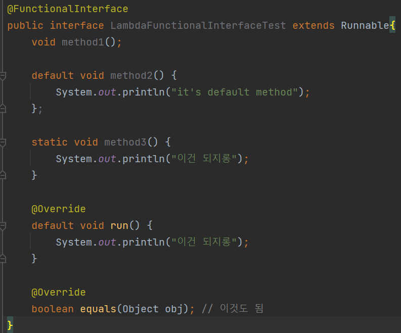 추상 메소드가 1개라면 함수적 인터페이스다.