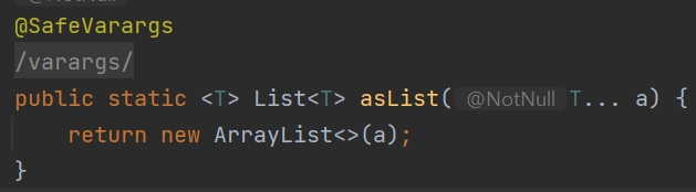 내부 구현을 보면, new ArrayList<>(a)의 결과를 반환하는 것을 볼 수 있다.