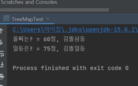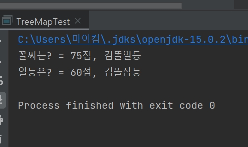 treeMap.put(new Score(10, 30, 35), "김똘일등");