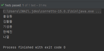 위의 문자열 목록에 홍길동과 김똘똘이 두번 나오는데, 출력 해보면..