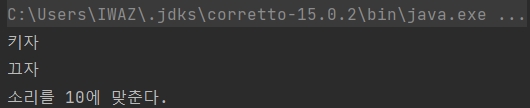 System.out.println("소리를 " + volume + "에 맞춘다.");