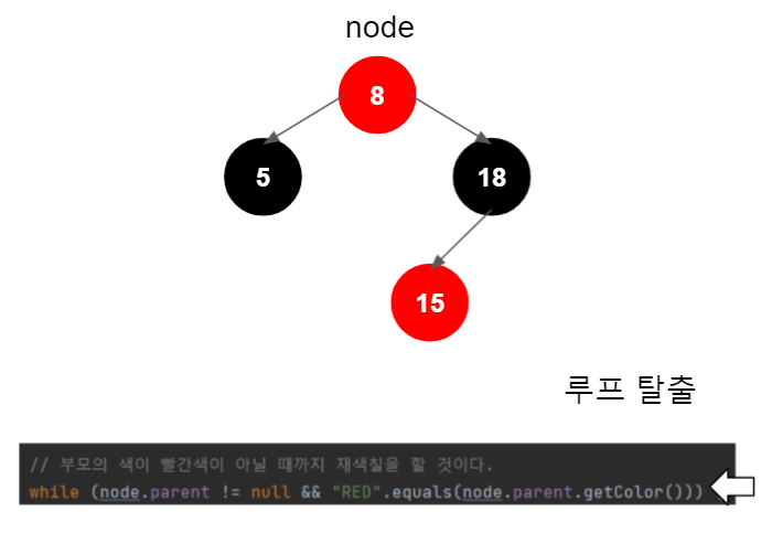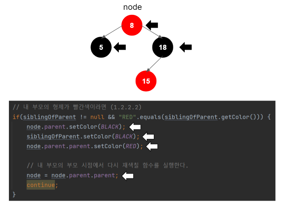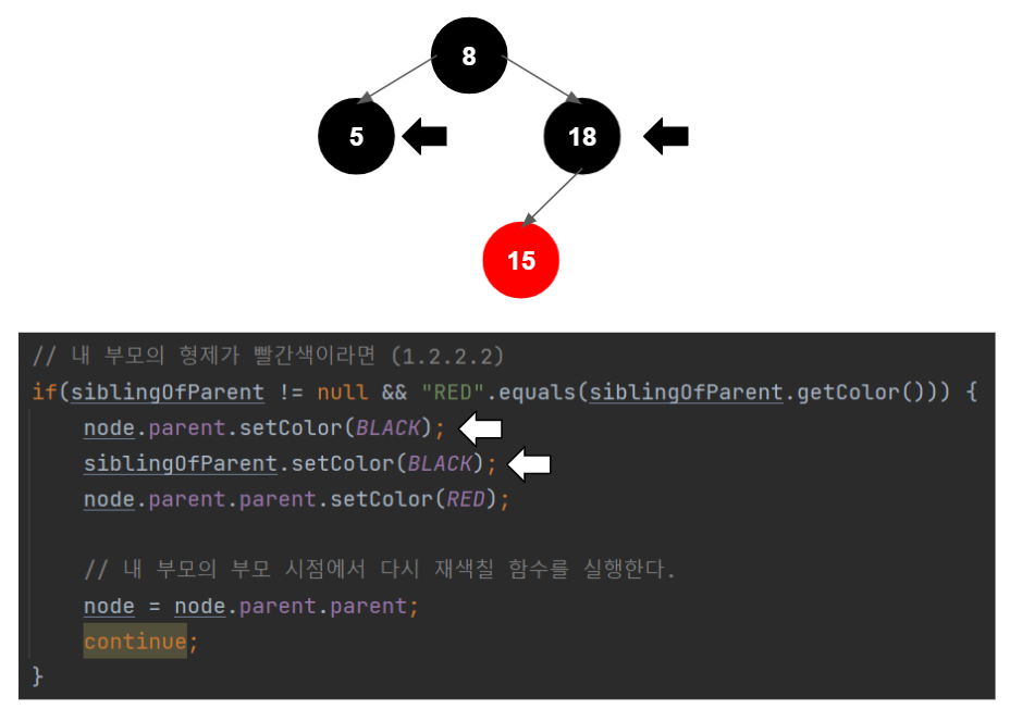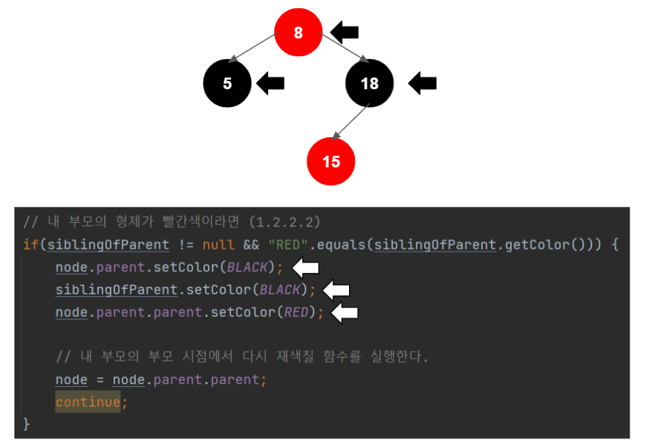 새 노드 부모의 형제가 빨간색이면, 재색칠을 한다.
